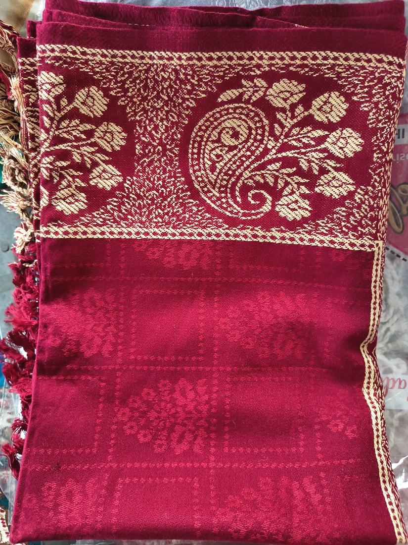 Add a touch of elegance to your winter wardrobe with this luxurious Warm Winter Stole, beautifully crafted in rich maroon with intricate gold paisley weaving. Soft, warm, and graceful—this stole enhances both everyday and festive outfits effortlessly.