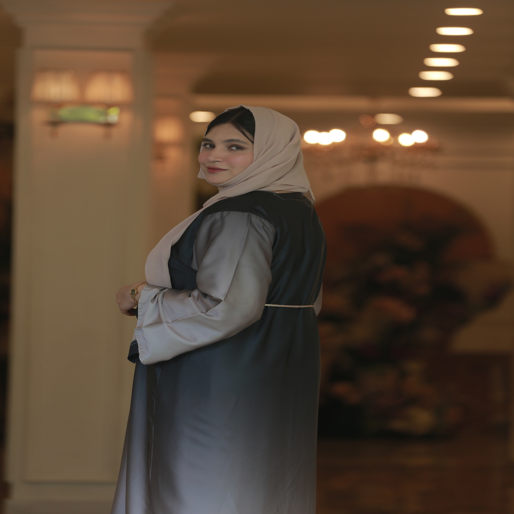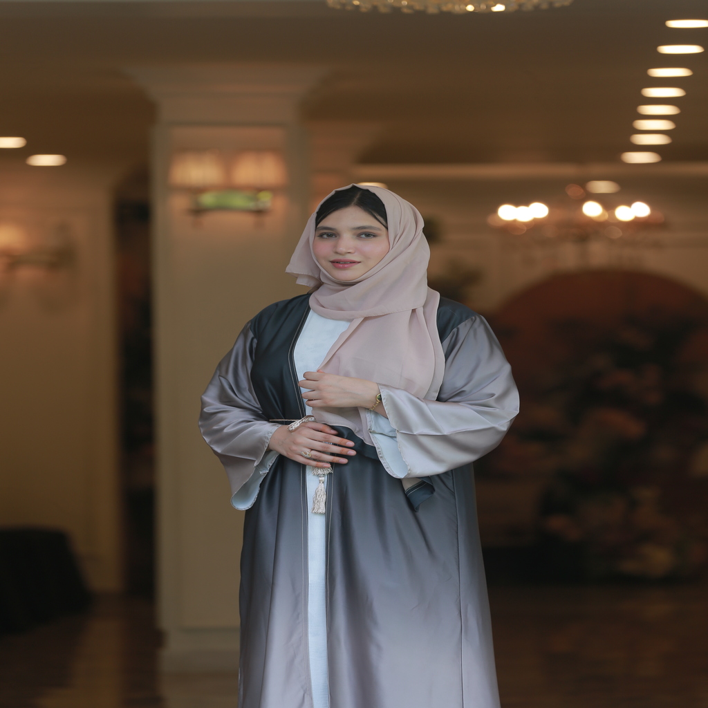 Where Luxury Meets Modesty. A Statement of Grace. Step into effortless elegance with this Dubai-style abaya for women, crafted from premium Armani silk fabric in at imeless smokey grey gradient. This open abaya brings together sophistication and comfort – perfect for those who love a lightweight, luxurious feel.
