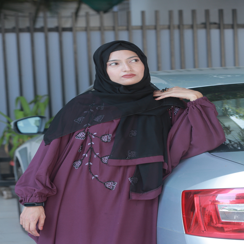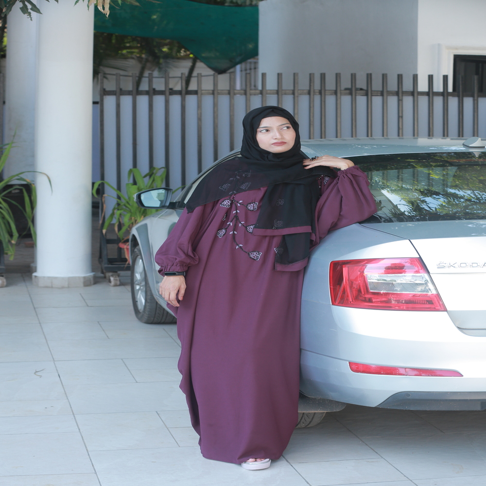 Grace every occasion with this stunning dark purple kaftan-style abaya featuring delicate hand embroidery. Its rich color and flowy silhouette make it an ideal choice for weddings, parties, and festive gatherings — blending modesty with modern elegance.